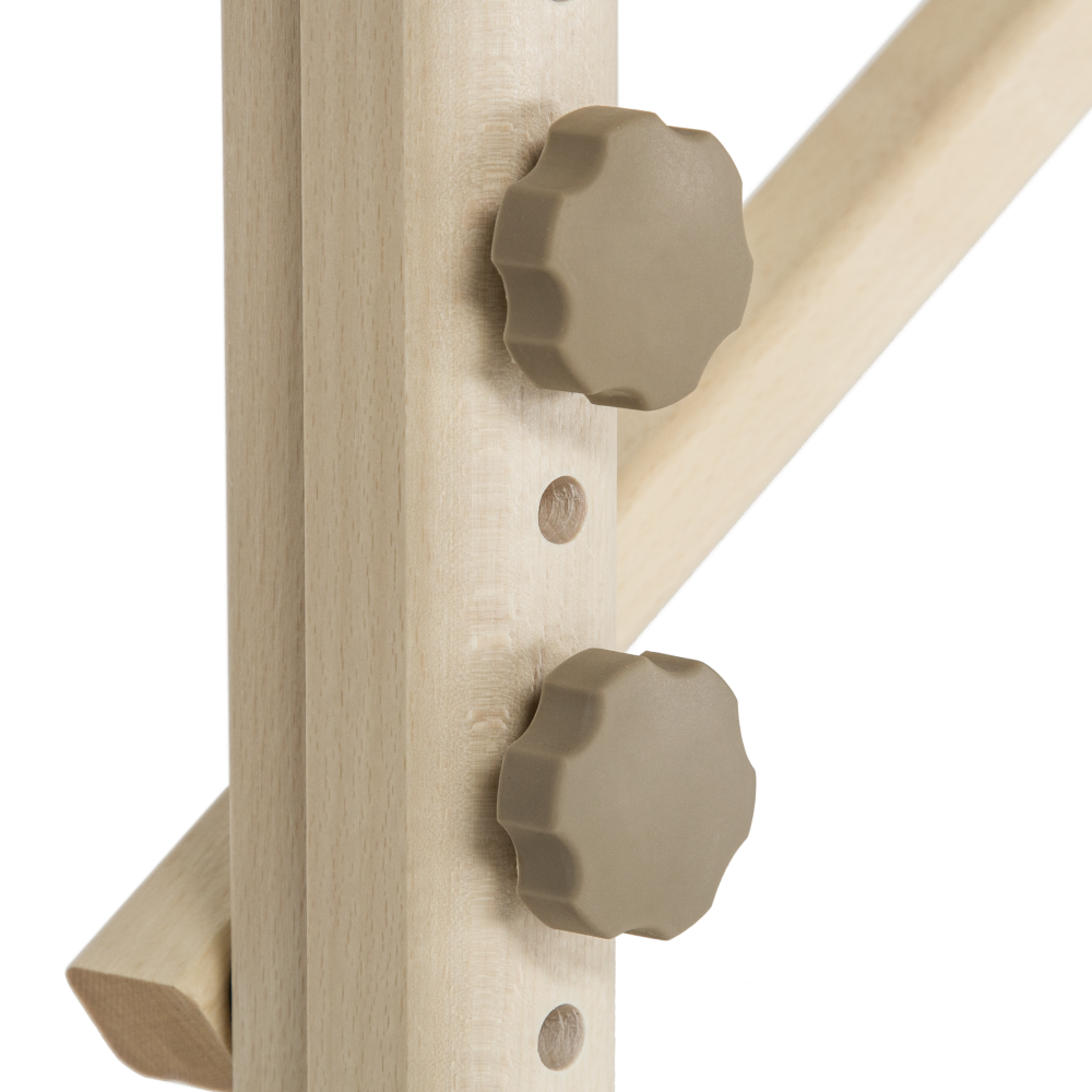 Дополнительные усилители в раме каркаса; эластичный шнур предохраняет натяжной трос от попадания между секциями во время складывания.