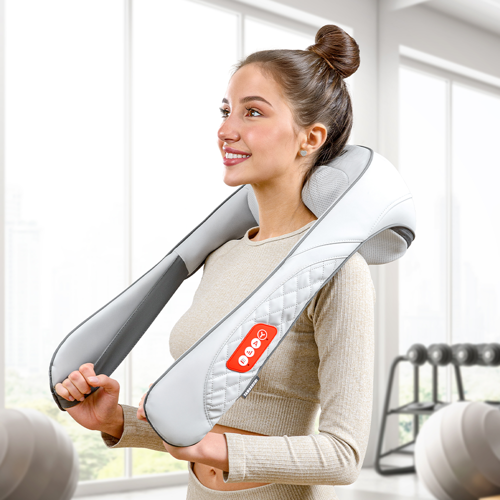 Встроенное перкуссионное воздействие массажных роликов способствует тщательной проработке триггерных точек на теле, а мягкий прогрев усиливает эффект массажа, ускоряет расслабление и делает процедуру особенно комфортной.
